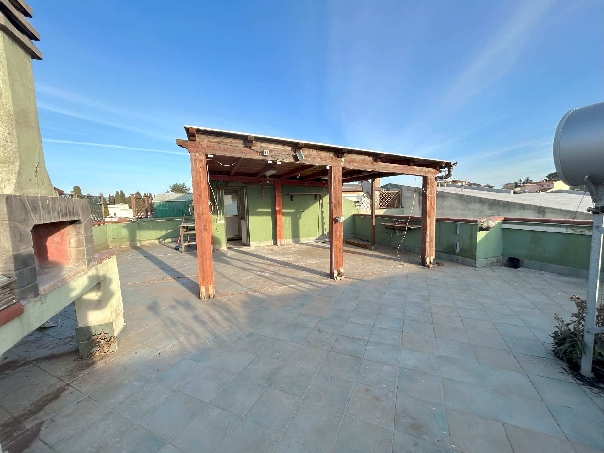 Ampio terrazzo sovrastante con pergola e zona barbecue